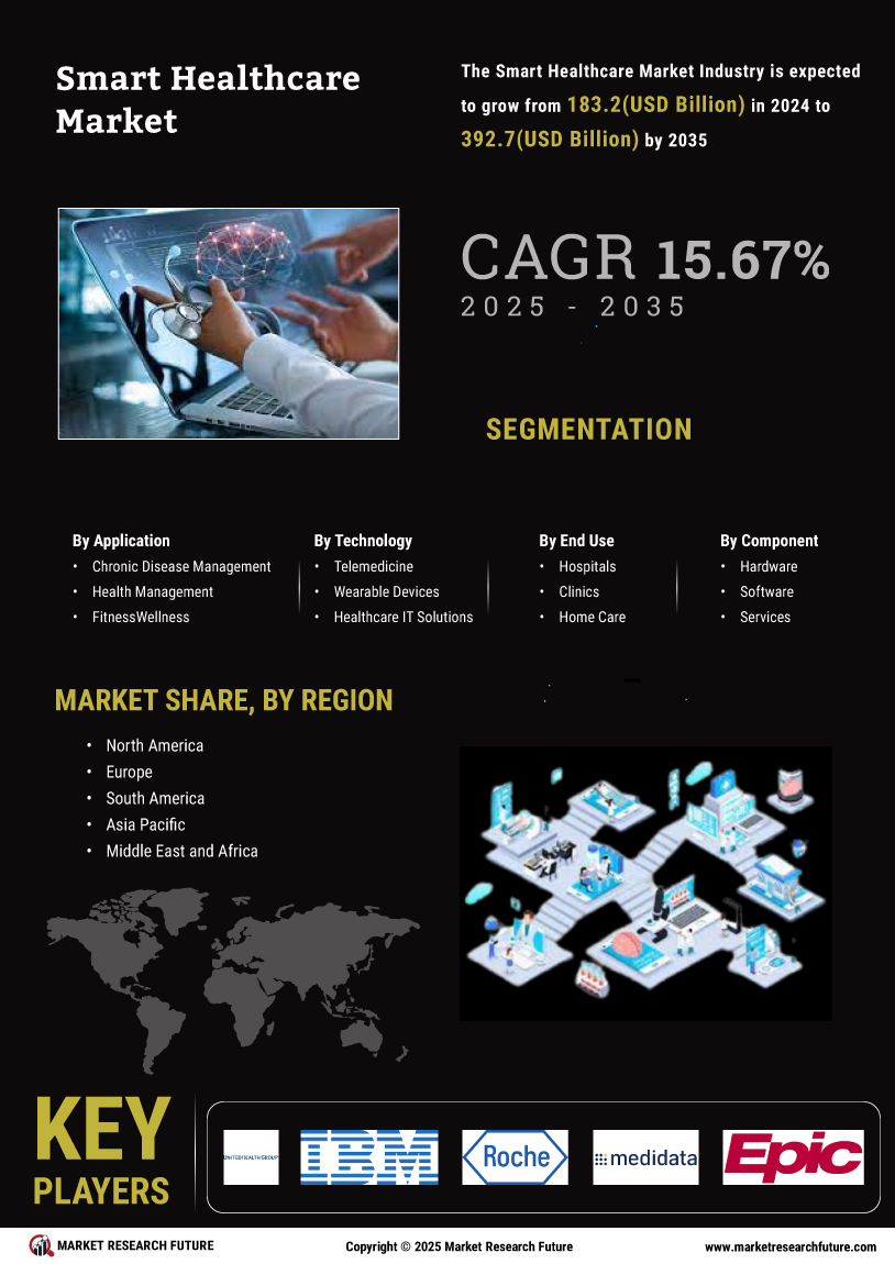 The Smart Healthcare Market is witnessing a surge in investment directed towards health technology startups. Venture capital funding in this sector has seen exponential growth, with investments reaching billions of dollars annually. This influx of capital is fostering innovation and the development of cutting-edge solutions that address various healthcare challenges. Investors are particularly interested in startups that leverage technology to improve patient care, streamline operations, and enhance data management. As a result, the Smart Healthcare Market is likely to benefit from a diverse array of new products and services that emerge from this vibrant startup ecosystem. This trend not only stimulates competition but also accelerates the pace of technological advancement in healthcare.