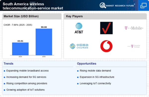 Technological advancements significantly impact the wireless telecommunication-service market in South America. The ongoing rollout of 5G technology is expected to revolutionize the market landscape by providing faster data speeds and lower latency. As of November 2025, several major cities in South America have begun to adopt 5G networks, with projections indicating that 5G subscriptions could reach 100 million by 2027. This transition not only enhances user experience but also enables new applications such as IoT and smart city solutions. Consequently, the wireless telecommunication-service market will experience substantial growth as operators invest in upgrading their infrastructure to support these advanced technologies..