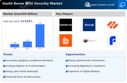 The South Korea BFSI Security Market is witnessing a dynamic and highly competitive landscape driven by rapid technological advancements and the increasing demand for secure financial transactions. With the rise of cyber threats and the need for robust security solutions, businesses within the banking, financial services, and insurance sectors are actively seeking advanced security measures to protect sensitive information and maintain customer trust. This market is characterized by a mix of established local players and international firms, all vying to capture market share by offering innovative and comprehensive security solutions tailored to the unique challenges faced by the industry.