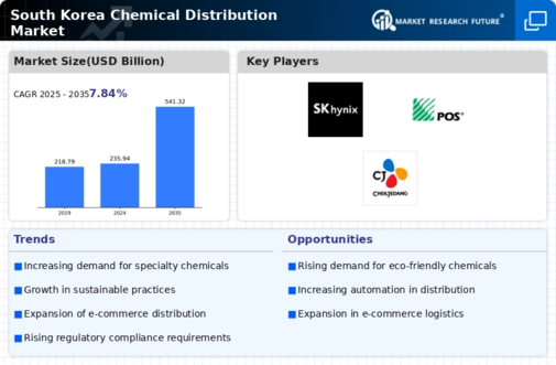 The South Korea Chemical Distribution Market is characterized by a dynamic landscape with several players competing for market share and fostering innovation. The market is influenced by various factors, including the demand for specialty chemicals, experience in logistics, and regulatory requirements. This environment encourages companies to adapt and adopt emerging technologies as a strategy for growth. The landscape showcases a mix of established firms and newcomers, all focused on serving diverse sectors, including automotive, electronics, and pharmaceuticals, amidst changing consumer needs and sustainability considerations.
