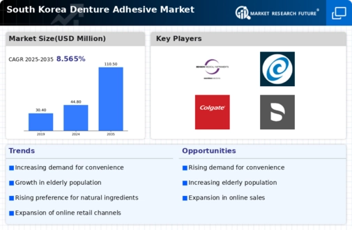 The South Korea Denture Adhesive Market is characterized by increasing competition driven by a growing elderly population and rising awareness regarding oral health and hygiene. The market features a variety of players striving to respond to the evolving needs of consumers looking for reliable, effective, and long-lasting denture adhesive products. With an emphasis on innovation and product development, companies within this sector are consistently enhancing their offerings to differentiate themselves in a crowded marketplace.