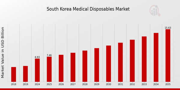 The medical disposables market in South Korea is experiencing growth due to rising healthcare expenditure. The government has been increasing its budget allocation for healthcare services, which has led to enhanced access to medical facilities and disposable products. In 2025, healthcare spending is projected to reach approximately $200 billion, reflecting a growth rate of around 5% annually. This increase in funding is likely to drive demand for various medical disposables, including syringes, gloves, and surgical instruments. As hospitals and clinics expand their services, the need for efficient and safe medical disposables becomes paramount, thereby propelling the market forward. Furthermore, the emphasis on preventive healthcare and patient safety is expected to further stimulate the demand for these products, indicating a robust future for the medical disposables market in South Korea.