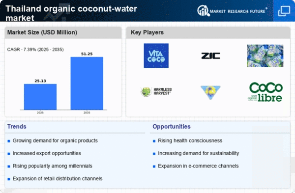 The organic coconut-water market in Thailand is significantly influenced by the rising popularity of functional foods, which are perceived to offer health benefits beyond basic nutrition. Coconut water, rich in electrolytes and essential nutrients, is increasingly recognized for its hydrating properties and potential health advantages. This trend aligns with the broader movement towards functional beverages, where consumers are willing to pay a premium for products that enhance their well-being. Market analysis suggests that the functional food sector in Thailand is projected to grow by 20% over the next five years, indicating a favorable environment for the organic coconut-water market to thrive as it aligns with consumer demands for health-enhancing products.