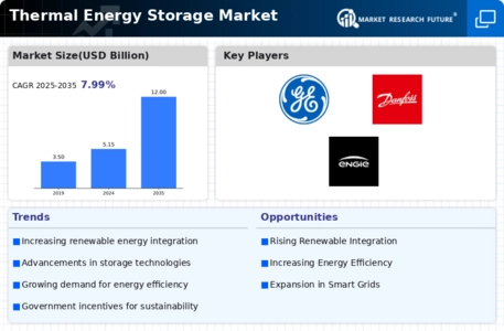 Government initiatives aimed at promoting energy efficiency and sustainability are pivotal for the Global Thermal Energy Storage Market Industry. Various countries are implementing financial incentives, tax credits, and grants to encourage the adoption of thermal energy storage systems. For example, the U.S. Department of Energy has launched programs to support research and development in energy storage technologies. Such policies not only stimulate market growth but also enhance public awareness regarding the benefits of thermal energy storage, contributing to a projected market value of 12 USD Billion by 2035.
