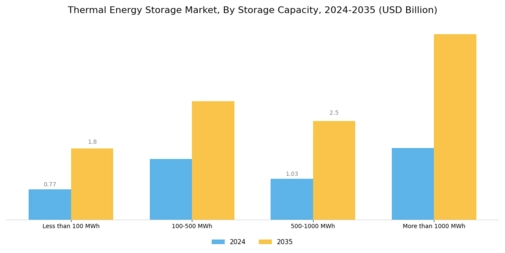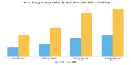 The increasing global emphasis on renewable energy sources is a primary driver for the Global Thermal Energy Storage Market Industry. As countries strive to meet their carbon reduction targets, the integration of thermal energy storage systems becomes essential for balancing supply and demand. For instance, solar thermal energy systems, which utilize thermal storage, are gaining traction in regions with high solar irradiance. This trend is reflected in the projected market value of 5.15 USD Billion in 2024, indicating a robust growth trajectory as investments in renewable technologies continue to rise.