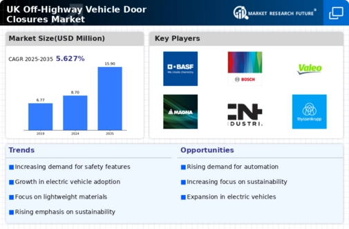 The UK Off-Highway Vehicle Door Closures Market is characterized by a complex interplay of various players that contribute to its growth and competitiveness. As this segment continues to evolve, companies are focusing on innovation, engineering excellence, and sustainability to differentiate their offerings. The competitive landscape is influenced by factors such as technological advancements, material efficiency, and regulatory compliance. Investments in research and development are essential for companies aiming to capture a significant share of this market, enabling them to not only enhance existing products but also develop new solutions tailored to the specific demands of off-highway vehicles.