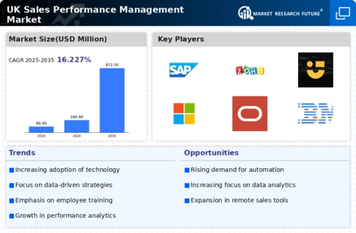 The UK Sales Performance Management Market has witnessed significant evolution in recent years, characterized by a growing emphasis on data-driven decision-making and advanced analytics. The competitive landscape is marked by a variety of technology providers and consulting services, all vying to offer tools that enhance sales forecasting, performance evaluation, and strategic planning. Organizations in this space are increasingly adopting integrated solutions that not only streamline sales processes but also provide valuable insights through real-time data analysis.