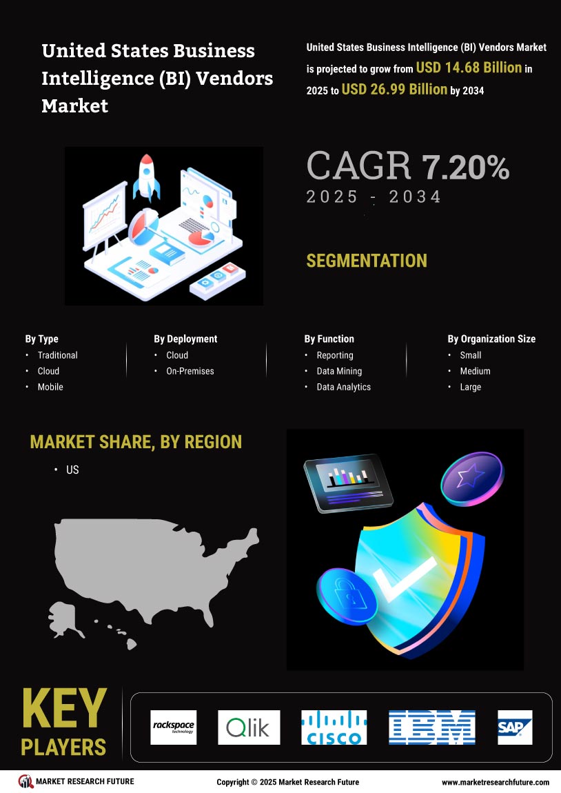 The shift towards cloud-based solutions is reshaping the landscape of the United States Business Intelligence (BI) Vendors Market. Organizations are increasingly migrating their BI applications to the cloud to benefit from enhanced scalability, flexibility, and cost-effectiveness. Recent data indicates that the cloud BI market is projected to grow at a compound annual growth rate (CAGR) of over 20% in the coming years. This transition allows businesses to access real-time data and analytics from anywhere, fostering collaboration and informed decision-making. As more companies recognize the advantages of cloud technology, BI vendors are likely to innovate and expand their offerings to meet the evolving needs of their clients.