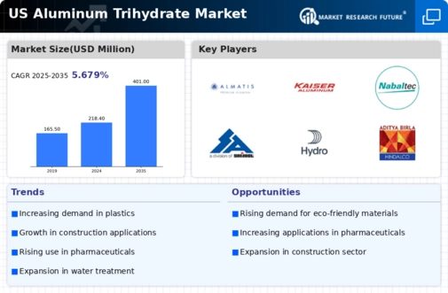 The aluminum trihydrate market exhibits a dynamic competitive landscape characterized by a blend of established players and emerging companies. Key growth drivers include the increasing demand for flame retardants, the rising need for environmentally friendly materials, and the expansion of the construction and automotive sectors. Major companies such as Alcoa Corporation (US), J.M. Huber Corporation (US), and Nabaltec AG (DE) are strategically positioned to leverage these trends. Alcoa Corporation (US) focuses on innovation in sustainable production methods, while J.M. Huber Corporation (US) emphasizes partnerships to enhance its product offerings. Nabaltec AG (DE) is actively pursuing regional expansion to tap into new markets, collectively shaping a competitive environment that prioritizes sustainability and technological advancement.