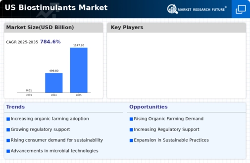 The US Biostimulants Market is poised for substantial growth, projected to reach 1147.2 USD Billion by 2035.