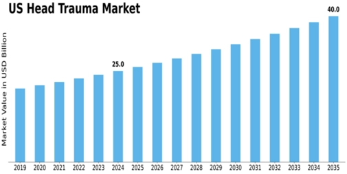 The US Head Trauma market is projected to grow from 25 USD Billion in 2024 to 40 USD Billion by 2035, reflecting a robust CAGR of 4.37%.