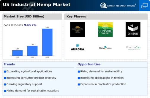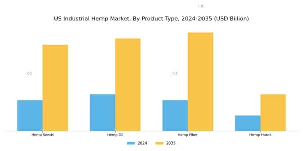 The US Industrial Hemp Market has seen significant growth in recent years, driven by an increased demand for hemp-based products, favorable legislative changes, and rising consumer awareness of the benefits associated with hemp-derived goods. Competitive dynamics in this market are influenced by a variety of factors, including technological advancements in cultivation and processing, the entry of new players looking to capitalize on emerging product categories, and the overarching trends towards sustainability and natural products.