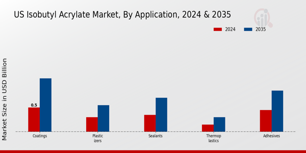 The isobutyl acrylate market experiences a notable surge in demand due to its extensive application in coatings and adhesives. The construction and automotive industries are particularly significant consumers, as they require high-performance materials that offer durability and resistance to environmental factors. In 2025, the coatings segment is projected to account for approximately 40% of the total market share, driven by the increasing need for protective coatings in various applications. Additionally, the adhesive segment is expected to grow at a CAGR of around 5% over the next few years, reflecting the ongoing trend towards lightweight materials and efficient bonding solutions. This rising demand for coatings and adhesives is a key driver for the isobutyl acrylate market, as manufacturers seek to innovate and meet the evolving needs of these industries.