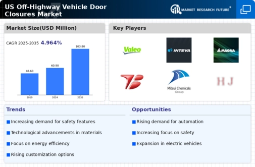 The US Off-Highway Vehicle Door Closures Market is characterized by a dynamic landscape where various companies compete to secure their position through innovation, product differentiation, and customer engagement. In this market segment, the focus is on providing robust, reliable, and efficient door closure systems that cater to the unique demands of off-highway vehicles such as agricultural equipment, construction machinery, and recreational vehicles. The competitive insights reveal a blend of well-established manufacturers and emerging players, each striving to deliver superior solutions that enhance vehicle performance and user experience.
