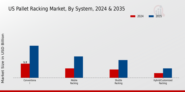 The rapid expansion of e-commerce in the US is a pivotal driver for the pallet racking market. As online retail continues to flourish, warehouses and distribution centers are increasingly adopting advanced storage solutions to accommodate higher inventory levels. This trend is evidenced by a projected growth rate of 15% in e-commerce sales over the next few years, necessitating efficient storage systems. The pallet racking market industry is responding to this demand by offering innovative racking solutions that optimize space and improve accessibility. Enhanced logistics and supply chain management practices are also contributing to the need for robust pallet racking systems, as businesses strive to meet consumer expectations for fast delivery. Consequently, the integration of automated storage solutions within the pallet racking market is likely to become more prevalent, further driving market growth.