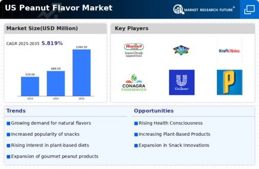 The US Peanut Flavor Market has witnessed notable growth and transformation over the past few years, as consumer preferences increasingly lean towards innovative and diverse flavor profiles. As this segment of the food industry continues to expand, various players are vying for market share by focusing on quality, product diversification, and distribution efficiency. The competitive landscape features established entities leveraging their experience and resources, while also integrating technological advancements to enhance production and flavor development processes.