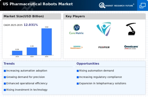 The US Pharmaceutical Robots Market is marked by rapid advancements in automation and robotics technology designed to enhance the efficiency and accuracy of pharmaceutical operations. This market encompasses a variety of applications, including drug dispensing, packaging, and laboratory automation, which together optimize workflow and improve patient safety. The competitive landscape is characterized by a diverse array of players ranging from specialized robotics manufacturers to large-scale medical device companies, each vying for a share of this burgeoning industry.