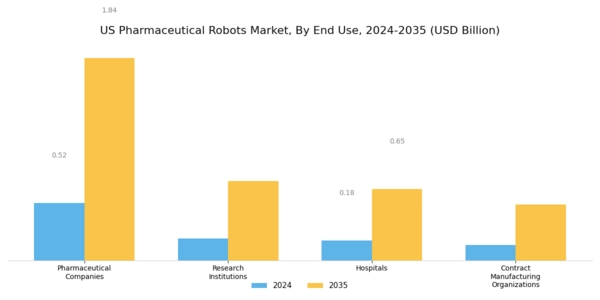 TUC Robotics has emerged as a significant player in the US Pharmaceutical Robots Market, leveraging its technological prowess to provide innovative robotics solutions that meet the unique demands of pharmaceutical environments. The company is recognized for its focus on creating user-friendly robotic systems that are capable of performing a variety of tasks such as drug preparation and inventory management. Strengths of TUC Robotics include its commitment to R&D, which enables the continuous enhancement of its product offerings, and its robust client service and support structure, which fosters strong relationships with its customers.