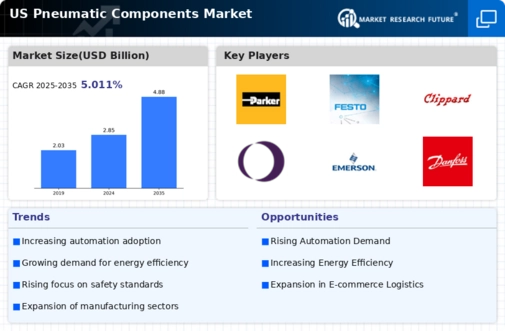 The competitive landscape of the US Pneumatic Components Market is characterized by a blend of established manufacturers and emerging players, all vying for a share in an industry driven by advancements in automation and efficiency. This market encompasses a broad range of products, including valves, actuators, and various other components critical for pneumatic applications across multiple sectors such as manufacturing, automotive, and aerospace. Key competitors are increasingly focusing on product innovation, operational efficiency, and customer service to gain an edge in this competitive arena.