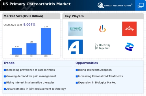 The competitive landscape of the US Primary Osteoarthritis Market is characterized by a diverse array of companies and therapeutic approaches aimed at tackling this chronic joint condition. As the prevalence of osteoarthritis continues to rise with an aging population, the market is becoming increasingly attractive to pharmaceutical and biotechnology firms seeking to offer innovative solutions. Competition is driven not only by the efficacy and safety of various treatments but also by factors such as pricing strategies, distribution channels, and overall market accessibility.