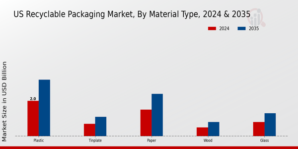 Legislative measures aimed at reducing plastic waste are exerting considerable pressure on the recyclable packaging market. Various states in the US have enacted laws that mandate the use of recyclable materials in packaging. For example, California's stringent regulations on single-use plastics have prompted companies to explore alternative packaging solutions. This regulatory environment encourages businesses to invest in recyclable packaging options, thereby fostering growth within the recyclable packaging market. As compliance with these regulations becomes essential, companies are likely to prioritize sustainable packaging strategies, further driving market expansion.
