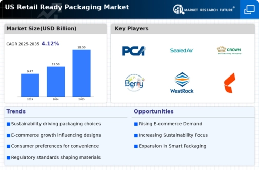 The US Retail Ready Packaging Market is characterized by a dynamic landscape where innovation, sustainability, and consumer convenience drive competition among market players. The strategic positioning of companies within this sector involves focusing on meeting changing consumer demands while addressing sustainability concerns. Companies are increasingly adopting advanced technologies, including automation and smart packaging solutions, to enhance efficiency and improve the consumer experience. The competition in this market is not only influenced by packaging efficiency and product visibility but also by the ability to respond to the rising trend of e-commerce, which requires adaptable and sustainable solutions.