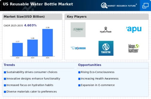 The US Reusable Water Bottle Market is a dynamic and rapidly evolving sector characterized by a variety of brands and products catering to the growing consumer demand for sustainable and eco-friendly options. With increasing awareness around environmental issues and a shift away from single-use plastics, the market has seen a significant influx of manufacturers and innovative designs. Brands are competing not only on product functionality and durability but also on aesthetics, brand image, and sustainability initiatives.