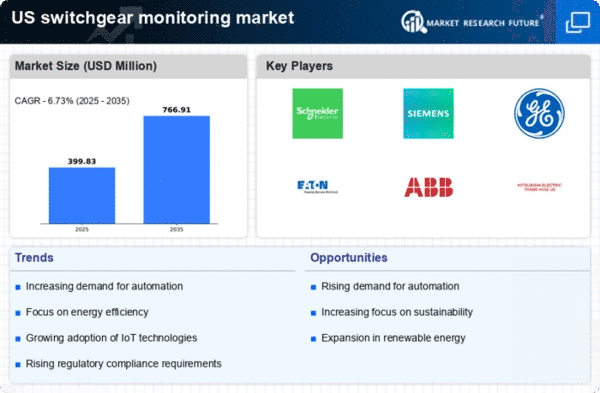 The switchgear monitoring market is being driven by an increased focus on infrastructure resilience. As the US faces challenges related to aging infrastructure and extreme weather events, there is a pressing need for reliable monitoring systems that can ensure the stability and safety of electrical grids. Investments in infrastructure resilience are projected to exceed $100 billion over the next decade, highlighting the urgency of modernizing existing systems. Enhanced monitoring solutions can provide real-time insights into the health of switchgear, allowing for timely interventions and reducing the risk of outages. This trend underscores the importance of robust monitoring systems in maintaining the reliability of power distribution networks, thereby fostering growth in the switchgear monitoring market.