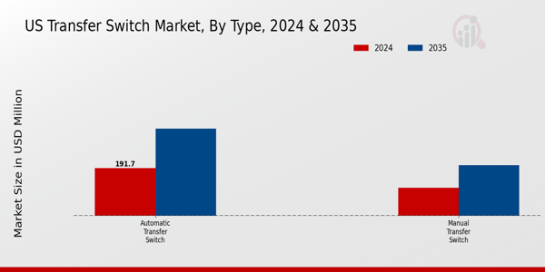 The transfer switch market is evolving due to the integration of advanced technologies in power systems. Innovations such as smart grids and IoT-enabled devices are transforming how energy is managed and distributed. Transfer switches equipped with smart technology can provide real-time monitoring and automated control, enhancing operational efficiency. As the U.S. energy landscape becomes increasingly digitized, the demand for technologically advanced transfer switches is expected to rise. In 2025, the market for smart transfer switches could grow by over 20%, reflecting the industry's shift towards more intelligent and responsive power management solutions.