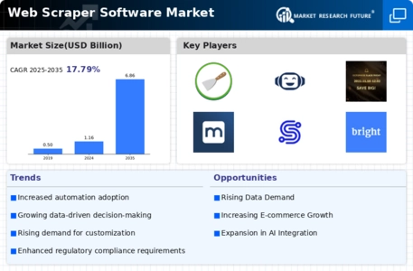 Technological advancements and automation play a pivotal role in shaping the Global Web Scraper Software Market Industry. Innovations in artificial intelligence, machine learning, and natural language processing enhance the capabilities of web scraping tools, allowing for more sophisticated data extraction and analysis. These advancements enable users to automate repetitive tasks, thereby increasing efficiency and accuracy in data collection. As organizations seek to leverage these technologies, the demand for advanced web scraping solutions is likely to rise. This trend may contribute to the market's growth, as businesses increasingly recognize the value of integrating automated data extraction into their operations.